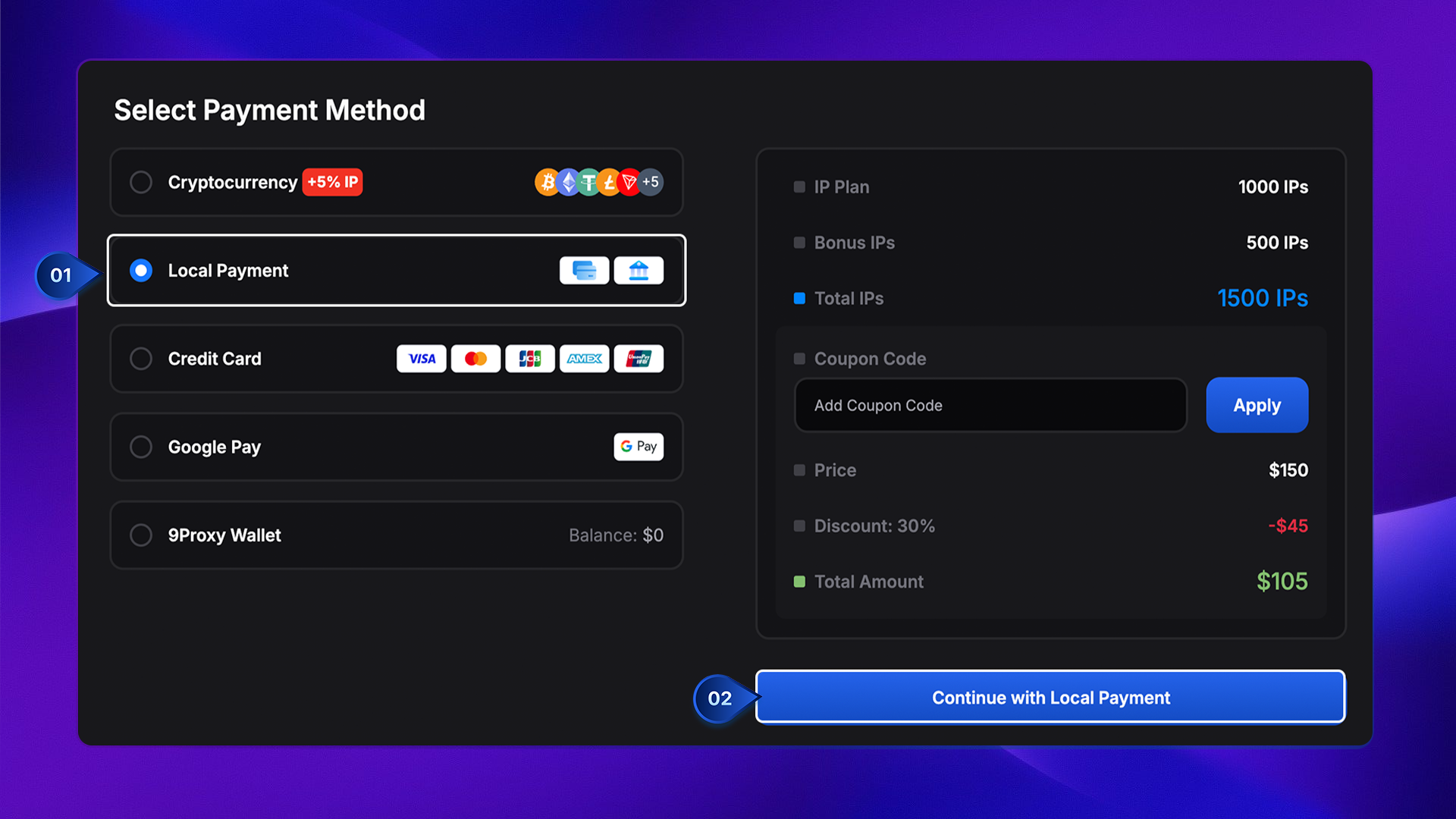 * On the checkout page, select "**Local Payment**" as your preferred payment option.