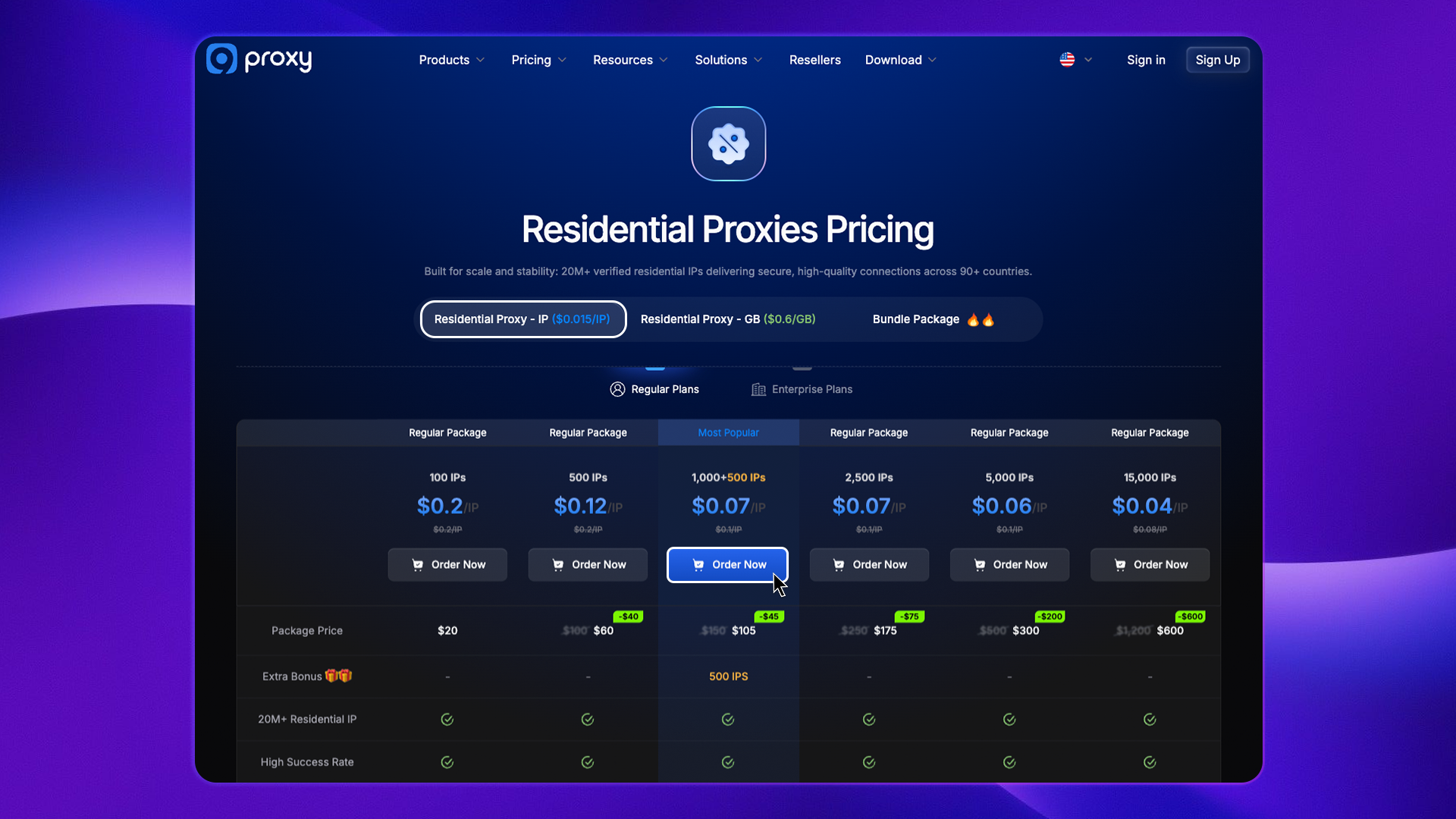 * Go to the Pricing Page of the proxy type you want: **Residential Proxy by IP / Residential Proxy by GB / Bundle Packages**