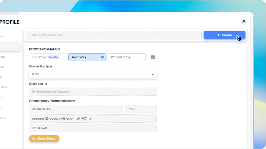You’ve successfully linked 9Proxy with Hidemyacc. Run unlimited profiles with rotating residential IPs and browser fingerprints that mimic real users — ideal for automation, marketing, and stealth tasks.
