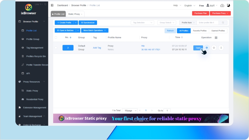 Quickly integrate your 9Proxy residential proxy with ixBrowser to manage multiple identities and stay undetectable.