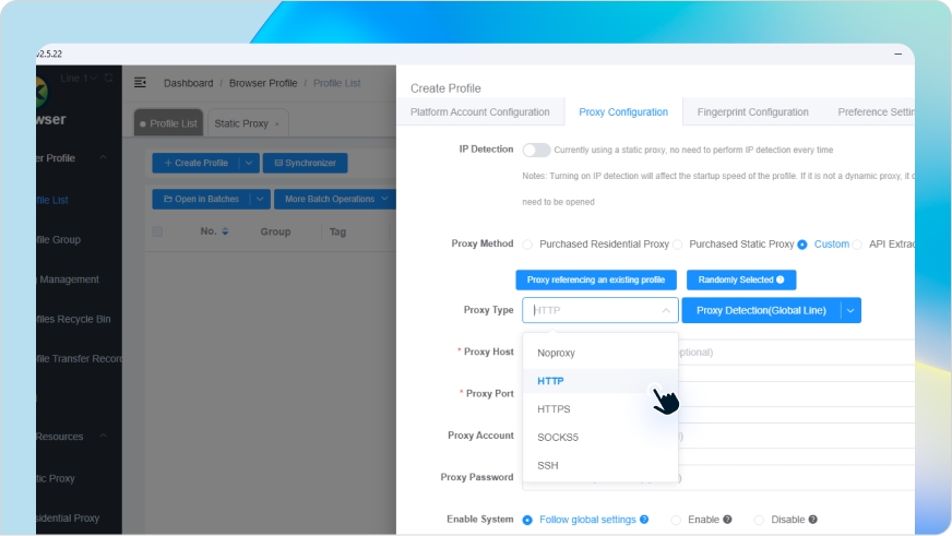 Choose your Proxy Type: HTTP, HTTPS, or SOCKS5
